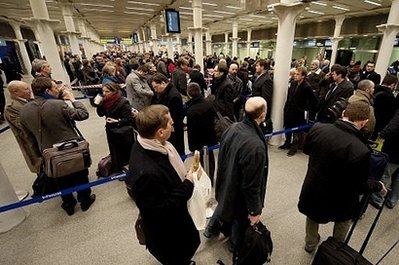 在英國圣潘克拉斯火車站排隊等候“歐洲之星”的旅客。
