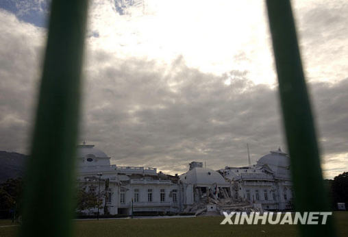 1月14日,海地首都太子港的海地總統府在地震中遭到嚴重損毀。海地當地時間12日下午發生強烈地震和多起余震,造成首都太子港大量房屋受損或倒塌,當地人士稱地震可能造成數萬人死亡。新華社記者戴維攝