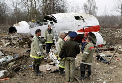 救援人員抵達波蘭總統專機墜毀現場。 資料圖