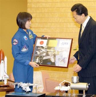據日本新聞網報道,從宇宙空間站返回不久的39歲日本美女航天員山崎直子20日下午到首相官邸,向日本首相鳩山由紀夫作匯報。鳩山說了一句話,讓山崎差一點昏倒。鳩山問山崎“日本為什么不開發載人宇宙飛船”,而報道指出這句話應該是山崎反問鳩山才對。