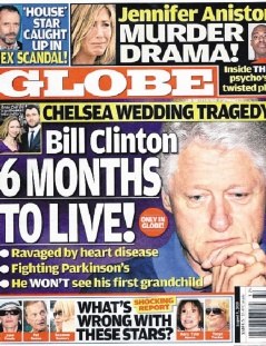 八卦雜志Globe將克林頓患病消息作為封面報(bào)道。