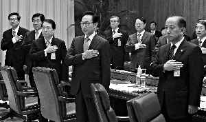 5月21日,李明博在首爾的總統府與內閣成員召開緊急會議。