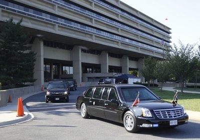 奧巴馬車隊前往美軍傷兵所在醫(yī)院。