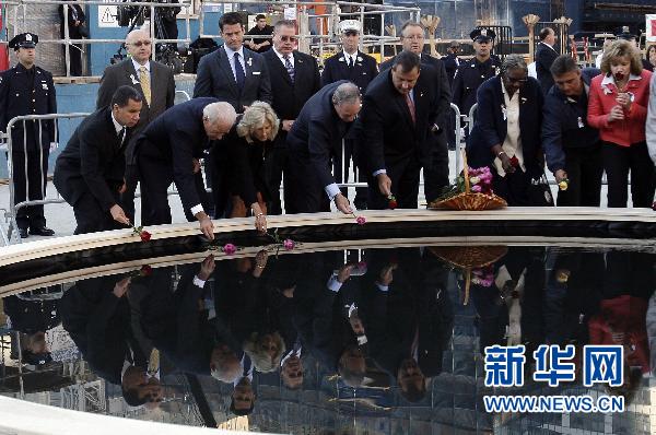 美國紐約市11日上午在世貿中心“零地帶”舉行“9·11”恐怖襲擊事件9周年紀念儀式,悼念在9年前的恐怖襲擊中的遇難者。