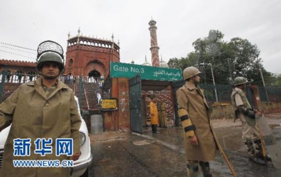 9月19日,在印度首都新德里的賈瑪清真寺附近,印度警察在槍擊現(xiàn)場警戒。印度警方19日說,當(dāng)天上午,印度首都新德里著名的歷史景點(diǎn)賈瑪清真寺門前發(fā)生一起游客遇襲事件,兩名來自中國臺(tái)灣的游客遭槍擊受傷,被送往醫(yī)院救治,目前沒有生命危險(xiǎn)。新華社/路透