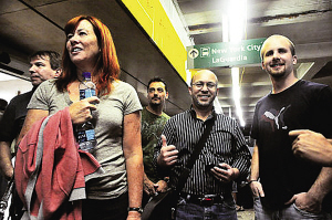 乘客興高采烈地走出機場。