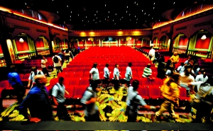 9月13日,美國洛杉磯,羅伯特·F·肯尼迪社區(qū)學(xué)校首批學(xué)生參觀學(xué)校禮堂。