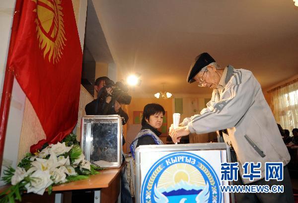 2010年10月10日,在吉爾吉斯斯坦首都比什凱克一個投票站,一名老人參加議會選舉投票。新華社記者沙達提攝