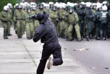 德國示威者朝警察投擲石塊(來源:伊朗媒體)