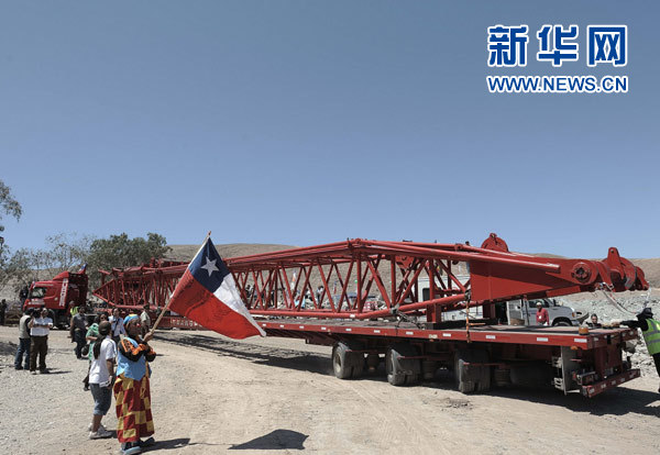 10月6日,運載救援設備的卡車抵達位于智利首都圣地亞哥以北800公里的圣何塞銅礦。智利圣何塞銅礦8月5日發生塌方事故,33名礦工被困700米深的地下已達兩個月。救援行動雖然困難重重,但是進展順利,礦工有望在短時間內升井獲救。新華社發(豪爾赫·維耶卡斯)