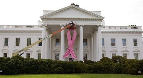 白宮掛起粉紅絲帶