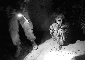 2005年1月18日,伊拉克塔爾阿法爾鎮(zhèn),一名女孩在大街上哭泣。當日,這名女孩的父母被美軍士兵誤殺。
