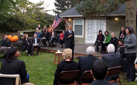 奧巴馬在西雅圖美國家庭的后院與人們交談