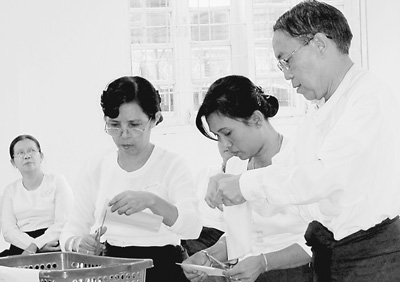 11月7日,工作人員在緬甸仰光一個(gè)投票站清點(diǎn)選票。緬甸多黨制全國(guó)大選投票當(dāng)日下午4時(shí)順利結(jié)束,各投票站隨即開(kāi)始點(diǎn)票工作。新華社記者 張?jiān)骑w攝