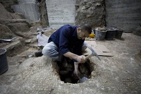當時政府正在此修建新的公共浴池,以供猶太教徒在祈禱前凈身,不料施工中卻獲得這一重要考古發(fā)現(xiàn)。考古人員沿著通往泳池底部的臺階,發(fā)現(xiàn)池底殘留著白色的馬賽克瓦片,池壁和屋頂?shù)耐咂峡讨藿ㄓ境氐墓帕_馬第十軍團的名字,甚至還有狗爪子的痕跡,專家懷疑這是第十軍團士兵養(yǎng)的狗留下的。