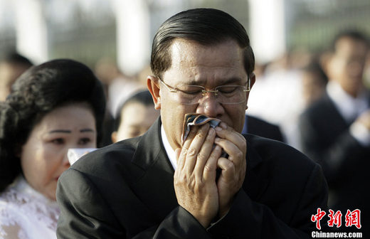 25日是柬埔寨為“11.22”金邊鉆石橋踩踏罹難者舉行全國哀悼日悼念儀式,當天上午在事發地鉆石橋頭舉行。柬埔寨首相洪森及夫人、官方及各社會團體、僧侶、普通民眾共數千人參加悼念儀式。儀式中,洪森不禁落淚。