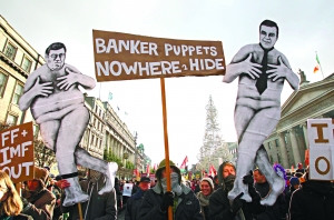 27日,都柏林,愛爾蘭5萬名示威者齊聚街頭,反對政府為減赤字減少社會福利。