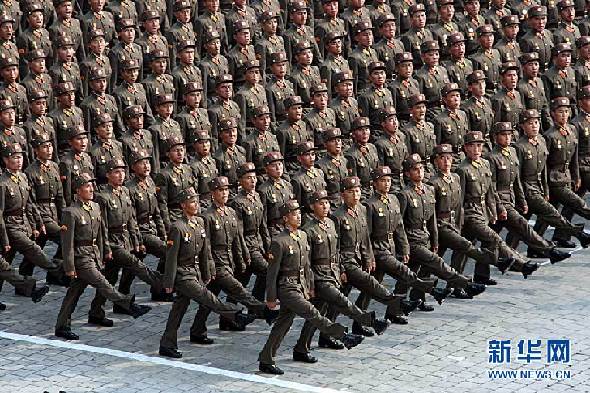 10月10日,在朝鮮首都平壤,受閱部隊(duì)接受檢閱。朝鮮10日上午在平壤金日成廣場舉行盛大閱兵式,慶祝朝鮮勞動(dòng)黨成立65周年。 新華社記者姚大偉攝