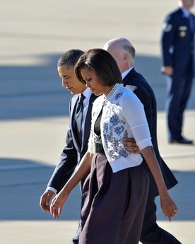 奧巴馬夫婦抵達發生嚴重槍擊案的亞利桑那州