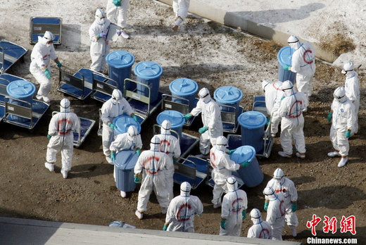 1月24日,在日本宮崎縣的一家出現(xiàn)高致病性禽流感疫情的養(yǎng)雞場,身著防護(hù)服的工人正在轉(zhuǎn)移被屠宰的雞。宮崎縣政府23日宣布,已確認(rèn)該縣新富町一家養(yǎng)雞場出現(xiàn)高致病性禽流感疫情,這是短短數(shù)天內(nèi)宮崎縣第二次報(bào)告禽流感疫情。