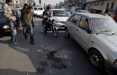 其中一名巴基斯坦死者的遺體送往停尸間時,親人在一旁痛哭。