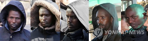 報道稱,這5名海盜乘坐阿聯(lián)酋專機在當?shù)貢r間30日凌晨4時18分抵達韓國金海機場空軍基地,在下飛機后立即被逮捕,并移送至釜山地方法院。