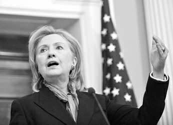在美國首都華盛頓,美國國務卿希拉里·克林頓就維基揭秘事件舉行記者會。