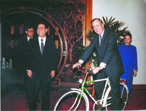老布什1989年訪華時,李鵬總理贈送他一輛自行車。