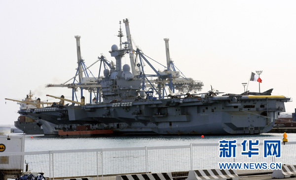法國媒體3月20日引用軍方消息報道說,法國“戴高樂”號航空母艦將于當天13時從法國土倫軍港出發,參與對利比亞的軍事打擊行動。這是法國“戴高樂”號核動力航空母艦2010年3月14日停泊在塞浦路斯利馬索爾港的資料照片。 新華社記者王強攝