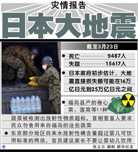 日本各地自來水及原奶和蔬菜等農畜產品受放射性污染的范圍23日繼續擴大,首相菅直人當天首次要求人們不要食用福島縣生產的一些種類的蔬菜。核電站放射性污染威脅到水和食品安全,開始對人們生活造成影響。