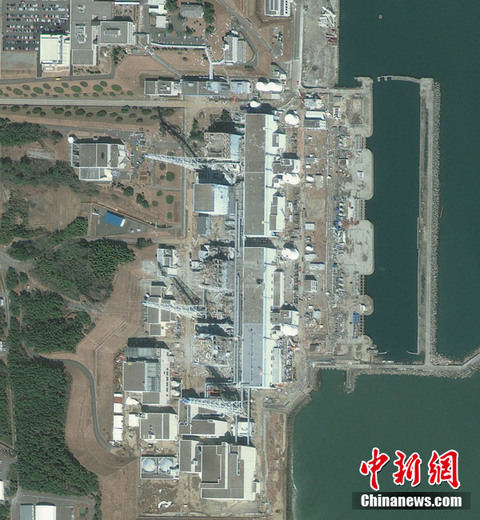3月18日(當地時間上午10時03分)拍攝的衛星照片顯示的是日本福島第一核電站。