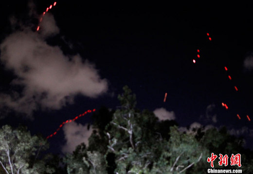 3月21日,利比亞首都的黎波里防空炮火向空中射擊。利比亞首都的黎波里多處地點21日夜間遭轟炸,這是西方國家連續第三天晚上對利比亞采取軍事行動。