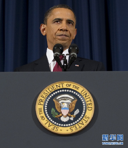 資料圖片:3月28日,美國(guó)總統(tǒng)奧巴馬在華盛頓發(fā)表演說,為利比亞軍事行動(dòng)辯解。 新華社/法新