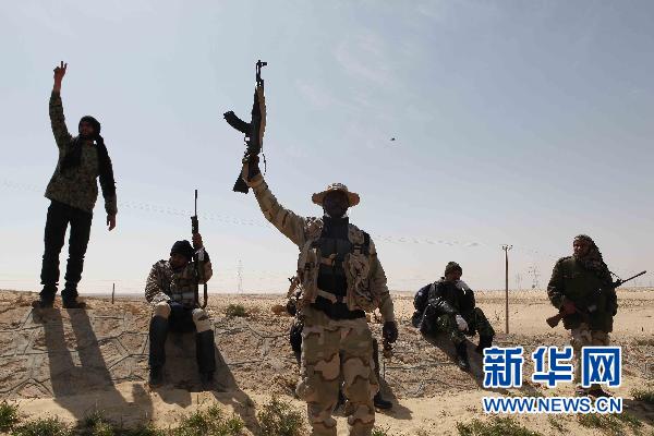 資料圖片:3月26日,在利比亞第二大城市班加西以南的艾季達比耶,反政府武裝者慶祝重新奪取艾季達比耶。新華社發(納賽爾·努里攝)