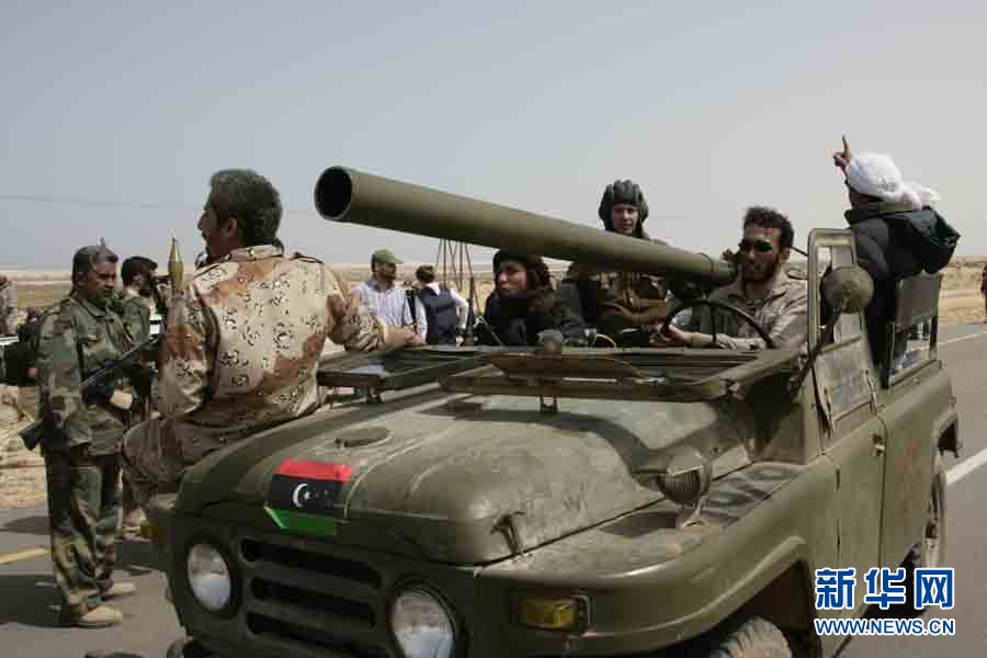 3月30日,部分利比亞反政府武裝人員準備從距卡扎菲的家鄉(xiāng)蘇爾特約250公里的小鎮(zhèn)拉斯拉努夫撤離。 新華社發(fā)(納賽爾·努里攝)