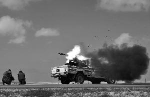 3月31日,利比亞反政府武裝用架在卡車上的火箭發(fā)射器進(jìn)攻政府軍。由于缺乏訓(xùn)練和重武器,也沒有統(tǒng)一指揮,利比亞反政府武裝在政府軍的猛烈攻勢(shì)下節(jié)節(jié)敗退。