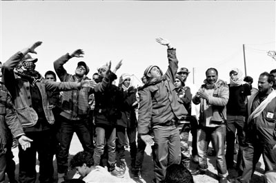 6日,在通往布雷加的反政府軍陣地上,武裝人員跳起舞蹈。新華社發