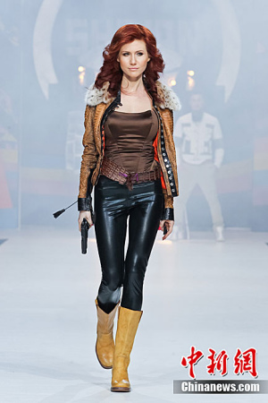 俄羅斯前美女間諜查普曼帶上真槍走秀。