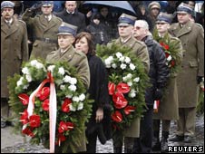 波蘭第一夫人在前總統卡欽斯基遇難周年前夕敬獻花圈。