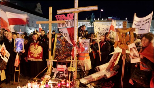 波蘭華沙民眾手舉十字架紀念空難