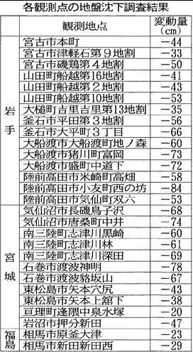 據日本新聞網報道,日本國土地理院14日查結果表示,受地震影響巖手,宮城,福島三縣的28處地方發生地盤下沉現象。