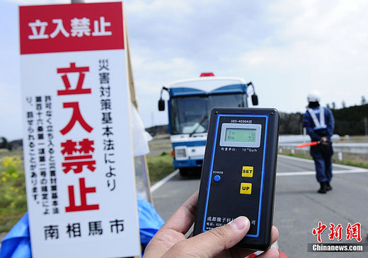 4月26日,中新社記者一行當天抵達位于日本福島縣南相馬市原町的福島第一核電站泄露事故20公里警戒圈,盡管此處的放射線測量數值處于安全水平,但仍可見警方豎起的“禁止入內”的告示牌。中新社記者 侯宇 攝