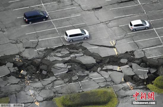 日本九州于當(dāng)?shù)貢r間4月16日凌晨發(fā)生里氏7.3級地震。據(jù)統(tǒng)計,目前死者已增至42人、9人下落不明。圖為當(dāng)?shù)貢r間4月16日,日本熊本縣發(fā)生地震導(dǎo)致南阿蘇城一個地面停車場發(fā)生地面塌陷。
