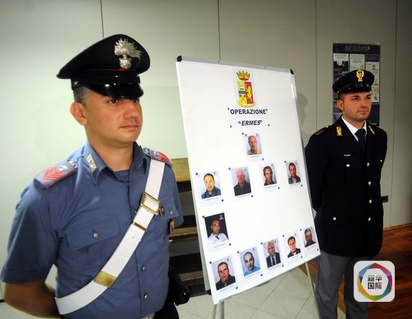 資料圖片:2015年8月3日,意大利警方在新聞發布會上展示逮捕的11名黑手黨成員照片。(圖片來源:新華/美聯)