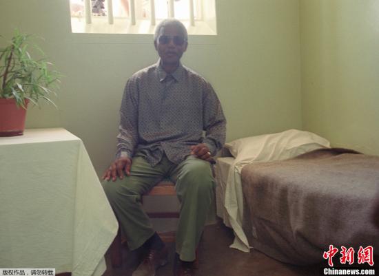 資料圖:1995年2月10日,曼德拉重訪位于羅本島的監(jiān)獄,他27年獄中生活的19年都是在這里度過的。