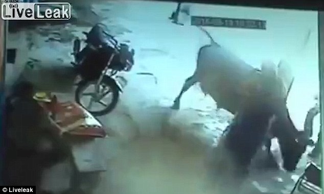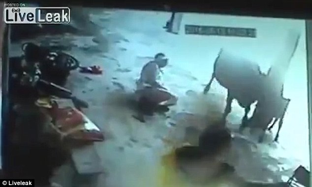 視頻中,母牛將兩人撞倒在地,并且還撞翻了他們的摩托車,防止其逃跑。西瑪在母牛的幫助下成功脫離險境,但由于之前已身中數刀無力前行,終于癱倒在地,不幸身亡。