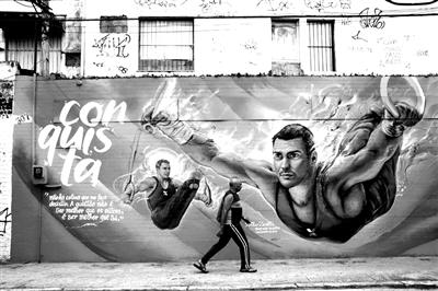 6月24日,里約熱內(nèi)盧街上的奧運(yùn)會(huì)宣傳畫。2016年8月5日至21日,第31屆夏季奧運(yùn)會(huì)將在巴西的里約熱內(nèi)盧舉行。新華社發(fā)