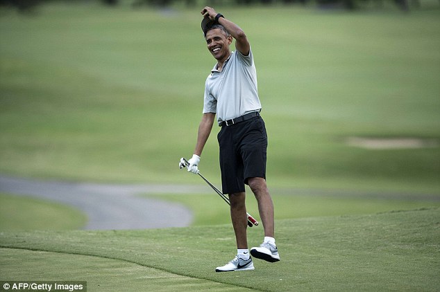 資料圖:奧巴馬被拍到與友人一同打高爾夫球。