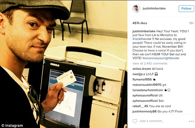 【環球網綜合報道】據英國《每日郵報》10月25日報道,美國35歲的樂壇巨星賈斯汀·汀布萊克在Instagram社交平臺上曬出了他在田納西州投票站的自拍照,呼吁更多選民進行投票。他因此有可能會受到長達30天的監禁。