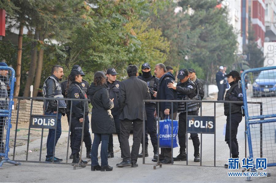 11月4日,在土耳其安卡拉,警察封鎖了人民民主黨總部周邊道路,并對來往人員進行盤查。